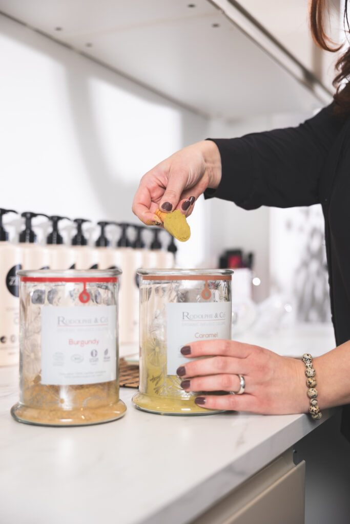 De kleuring van Rodolphe & Co is een minerale kleuring en blondering, gemaakt van 95% natuurlijke ingrediënten zoals mineralen, arginine en plantaardige oliën. Deze formule is zacht voor het haar en ideaal voor mensen die gevoelig zijn voor traditionele haarverf. Het biedt langdurige, prachtige kleur met 100% dekkracht, terwijl de natuurlijke kleurschakeringen behouden blijven. De producten zijn vrij van ammoniak, MEA, PEG, EDTA, resorcinol, PPD en PTD, en zijn Ecocert- en Cosmetisch gecertificeerd. De perfecte keuze voor de (bewuste) consument die op zoek is naar een gezonde en milieuvriendelijke kleuring.